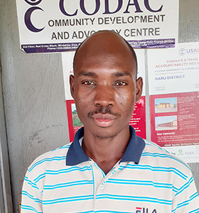 He has several years of professional experience in Development, Research and Governance. Currently he is the Executive Director (ED) of CODAC, former Municipal Chief Executive Bawku Municipal Assembly 2013-2016, National service coordinator Bawku East District-2001-2002 BEWDA-Gender, HIV, Women Rights and Governance programme officer 2002-2006, Programme officer: BEWDA/IBIS PPLG Project – 2002 – 2006, Programme manager –CODAC 2006.